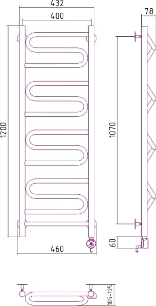 Полотенцесушитель электрический Сунержа ЭЛЕГИЯ 1200х400