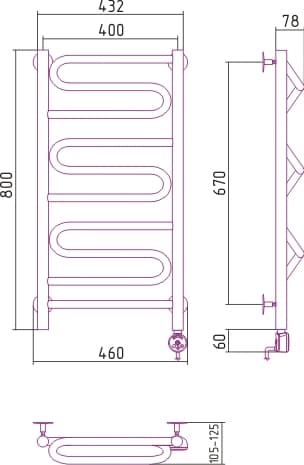 Полотенцесушитель электрический Сунержа ЭЛЕГИЯ 800х400 правый