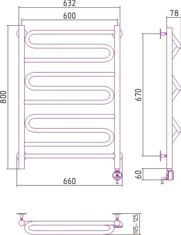 Полотенцесушитель электрический Сунержа ЭЛЕГИЯ 800х600