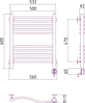 Полотенцесушитель электрический Сунержа ФЛЮИД 600х500